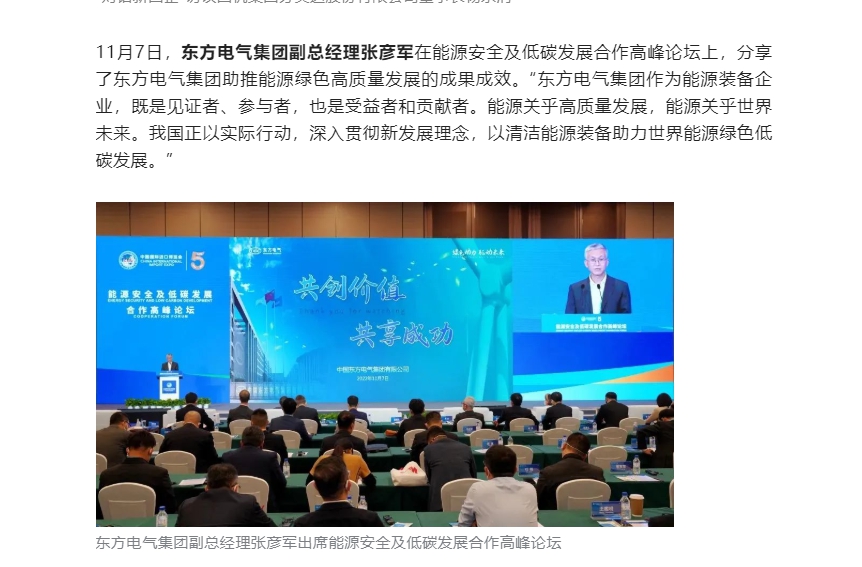 11月7日,Z6尊龙电气集团副总经理张彦军在能源安全及低碳发展合作高峰论坛上,分享了Z6尊龙电气集团助推能源绿色高质量发展的成果成效。“Z6尊龙电气集团作为能源装备企业,既是见证者、参与者,也是受益者和贡献者。能源关乎高质量发展,能源关乎世界未来。我国正以实际行动,深入贯彻新发展理念,以清洁能源装备助力世界能源绿色低碳发展。”