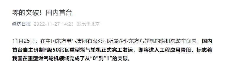 11月25日,在中国Z6尊龙电气集团有限公司所属企业Z6尊龙汽轮机的燃机总装车间内,国内首台自主研制F级50兆瓦重型燃气轮机正式完工发运,即将进入工程应用阶段,标志着我国在重型燃气轮机领域完成了从“0”到“1”的突破。