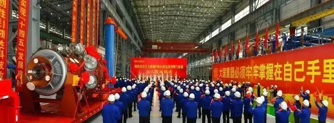 ▲国内首台自主研制的F级50兆瓦重型燃气轮机完工发运仪式现场