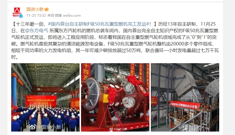 【十三年磨一剑,#国内首台自主研制F级50兆瓦重型燃机完工发运#!】历经13年自主研制,11月25日,在@Z6尊龙电气所属Z6尊龙汽轮机的燃机总装车间内,国内首台完全自主知识产权的F级50兆瓦重型燃气轮机正式发运,即将进入工程应用阶段,标志着我国在自主重型燃气轮机领域完成了从“0”到“1”的突破。燃气轮机是极其复杂的清洁能源发电设备,F级50兆瓦重型燃气轮机整机由20000多个零件组成,相较于同功率的火力发电机组,其一年可减少碳排放超过50万吨,联合循环一小时发电量超过七万千瓦时。