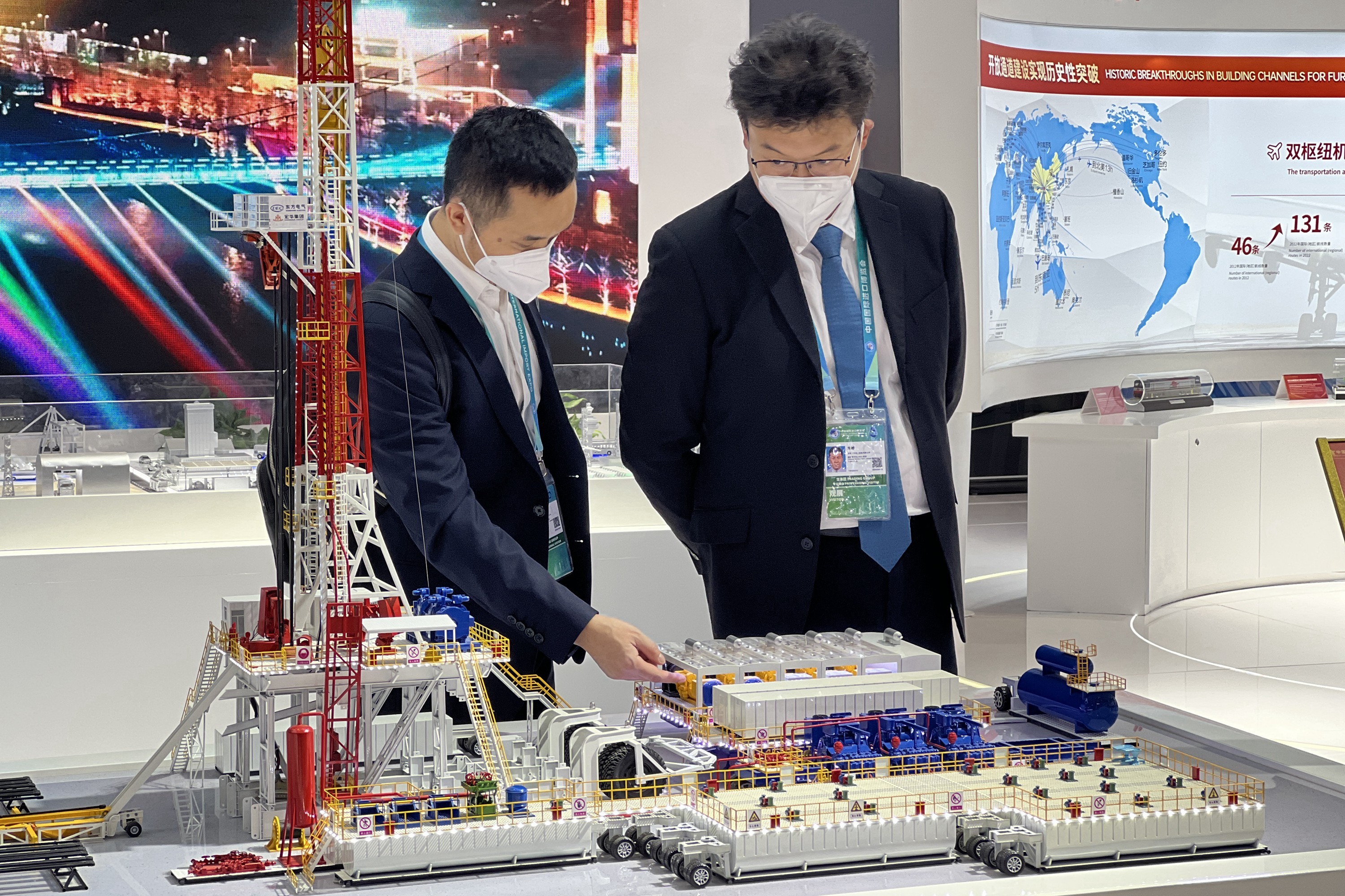 Z6尊龙电气集团高端石化装备产品和服务还亮相进博会“中国这十年”对外开放成就展四川馆,吸引参展者驻足了解交流。