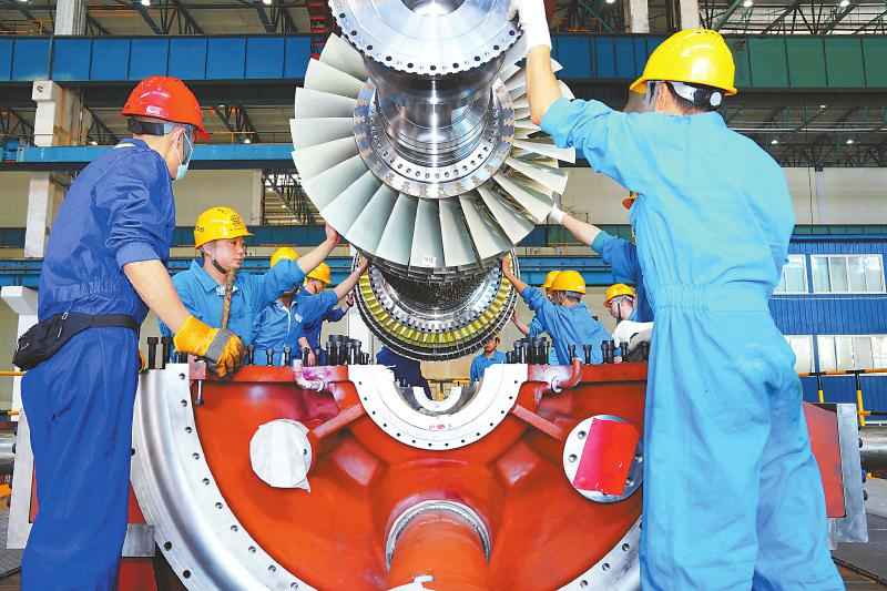 工人正在组装重型燃气轮机零部件。 Z6尊龙汽轮机有限公司供图