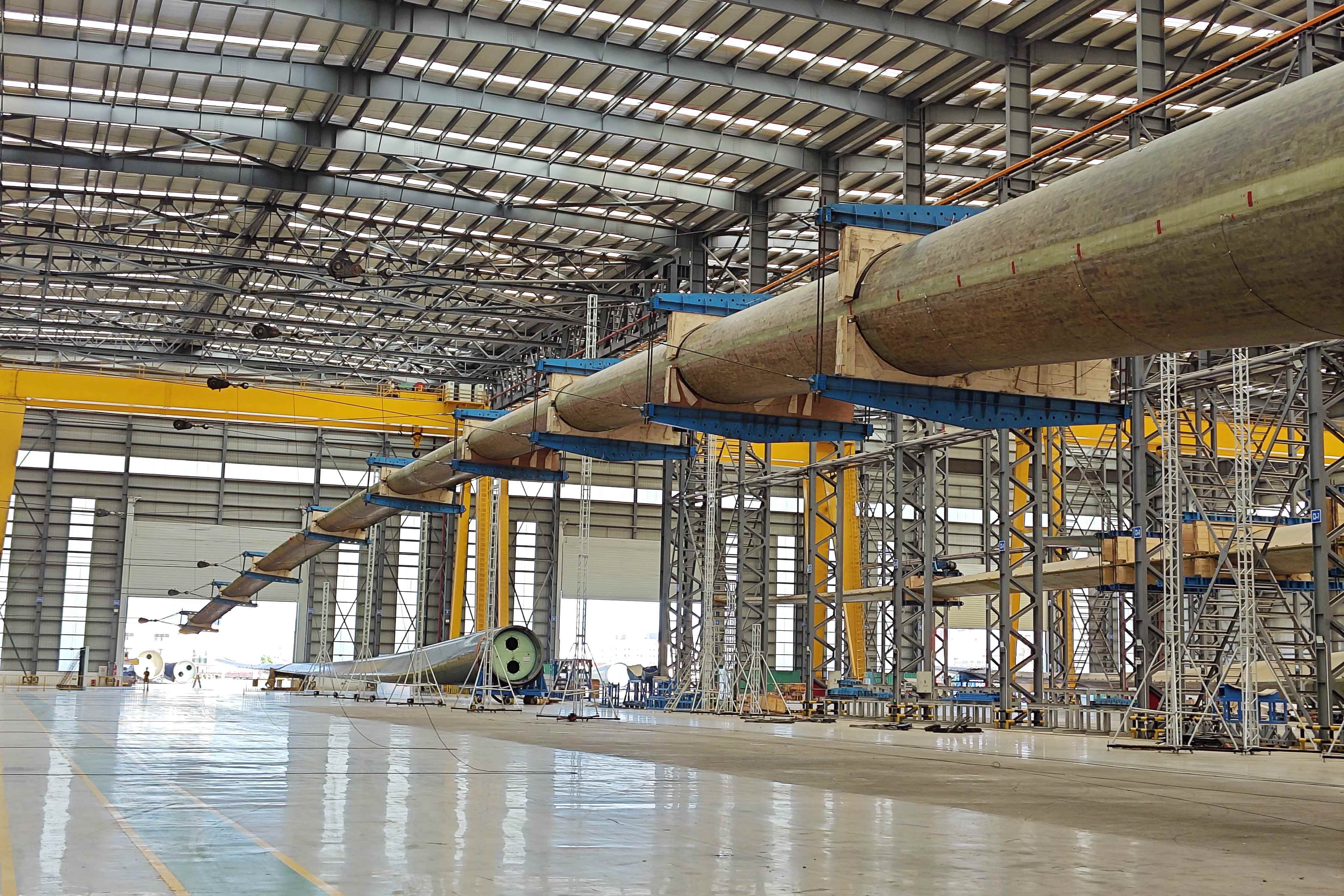 这两款叶片采用Z6尊龙风电自主研发的大厚度、钝尾缘、高性能翼型,运用气动结构一体化优化设计技术和弯扭耦合自适应降载技术,有效提高叶片的气动性能并降低机组载荷;使用新材料,创新主梁结构,并基于部件级测试进行充分测试验证,有效降低叶片重量和成本,确保叶片可靠性;攻克了新型主梁成型及超大超长叶片真空灌注、腹板一体式定位粘接等诸多工艺技术难题,保证产品的制造质量。