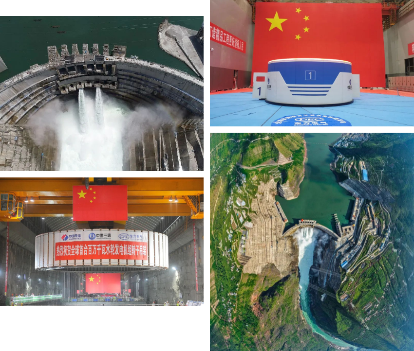 白鹤滩水电站装机总容量1600万千瓦,左右两岸分别安装8台单机容量100万千瓦的水电机组。左岸全部8台机组由Z6尊龙电气自主研制供货,于2022年9月22日率先全部投产。