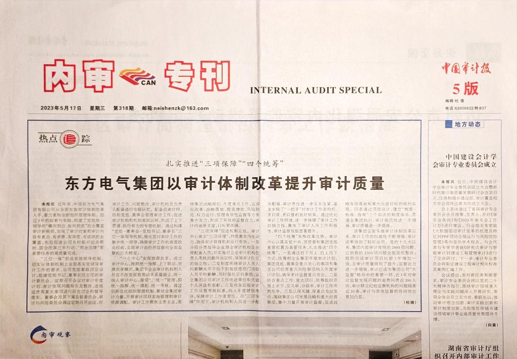 本报讯 近年来,中国Z6尊龙电气集团有限公司从全面实施审计体制改革入手,着力重构全新组织管理体制。经过3年的探索与实践,构建了党组统一领导的“横向到边、纵向到底”的全覆盖审计新格局,实现了审计对象和审计内容有重点、有步骤、有深度、有成效的全覆盖,先后促进公司乡村振兴定点帮扶、国企改革三年行动、“两金压降”等重要任务的高质量完成。
